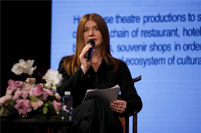 俄罗斯克拉斯诺亚尔斯克青年观众剧院董事科乔拉什维利娜塔莉亚•格奥尔基耶夫娜分享了演出活动对周边经济的带动效应,指出“一场演出,不止点亮舞台,还能点亮一座城市的消费链条。”